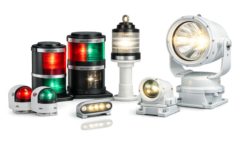 Equipos de iluminación náutica diseñados para garantizar la visibilidad, señalización y seguridad de barcos y buques durante la navegación. Incluyen luces de navegación, fondeo y cubierta, fabricadas para cumplir con la normativa marítima y ofrecer una señalización clara en cualquier condición.