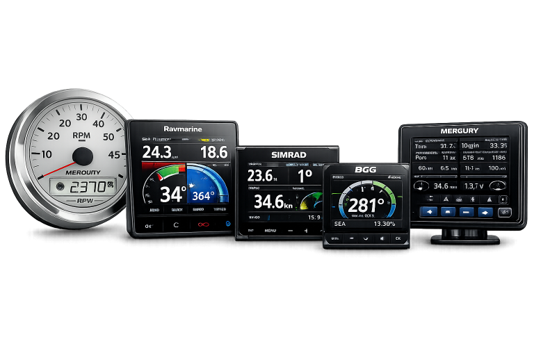 Equipos de medición y monitorización instalados en embarcaciones para supervisar parámetros esenciales como velocidad, rumbo, profundidad o estado de los sistemas del barco. Permiten al patrón o capitán controlar el funcionamiento de la embarcación y navegar de forma segura y eficiente.