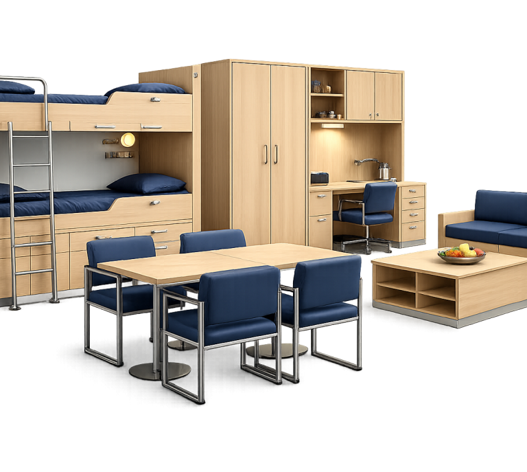 En Vigo Ships Supply ofrecemos una amplia gama de muebles navales diseñados para equipar todo tipo de embarcaciones, desde camarotes hasta zonas comunes y áreas operativas. Nuestro mobiliario está fabricado con materiales de alta calidad, preparados para soportar condiciones de humedad, vibración y uso intensivo propios del entorno marítimo.