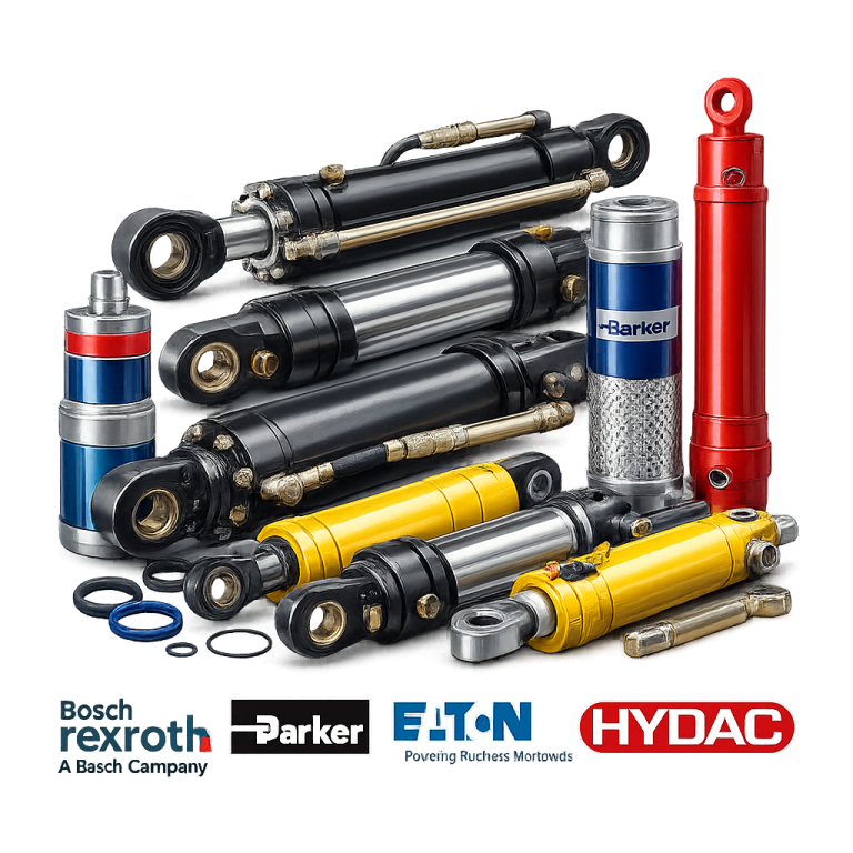 Suministro y reparación de cilindros hidráulicos de simple y doble efecto, así como cilindros telescópicos, para aplicaciones navales e industriales. Ofrecemos soluciones estándar y a medida, con componentes y recambios compatibles con marcas de referencia como Bosch Rexroth, Parker, Eaton o Hydac.